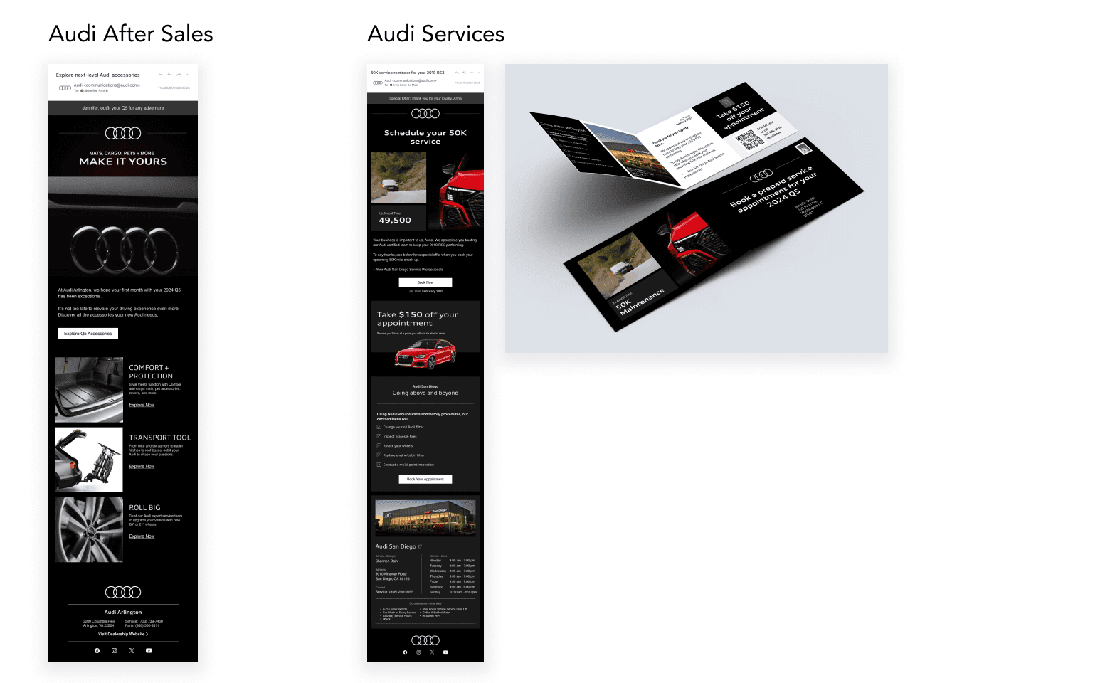 After showing work for VW After Sales, Audi Prospect, VW Financial Services, Audi After Sales also was interested in seeing our work. We developed additional emails mirroring the VW after sales creative work.